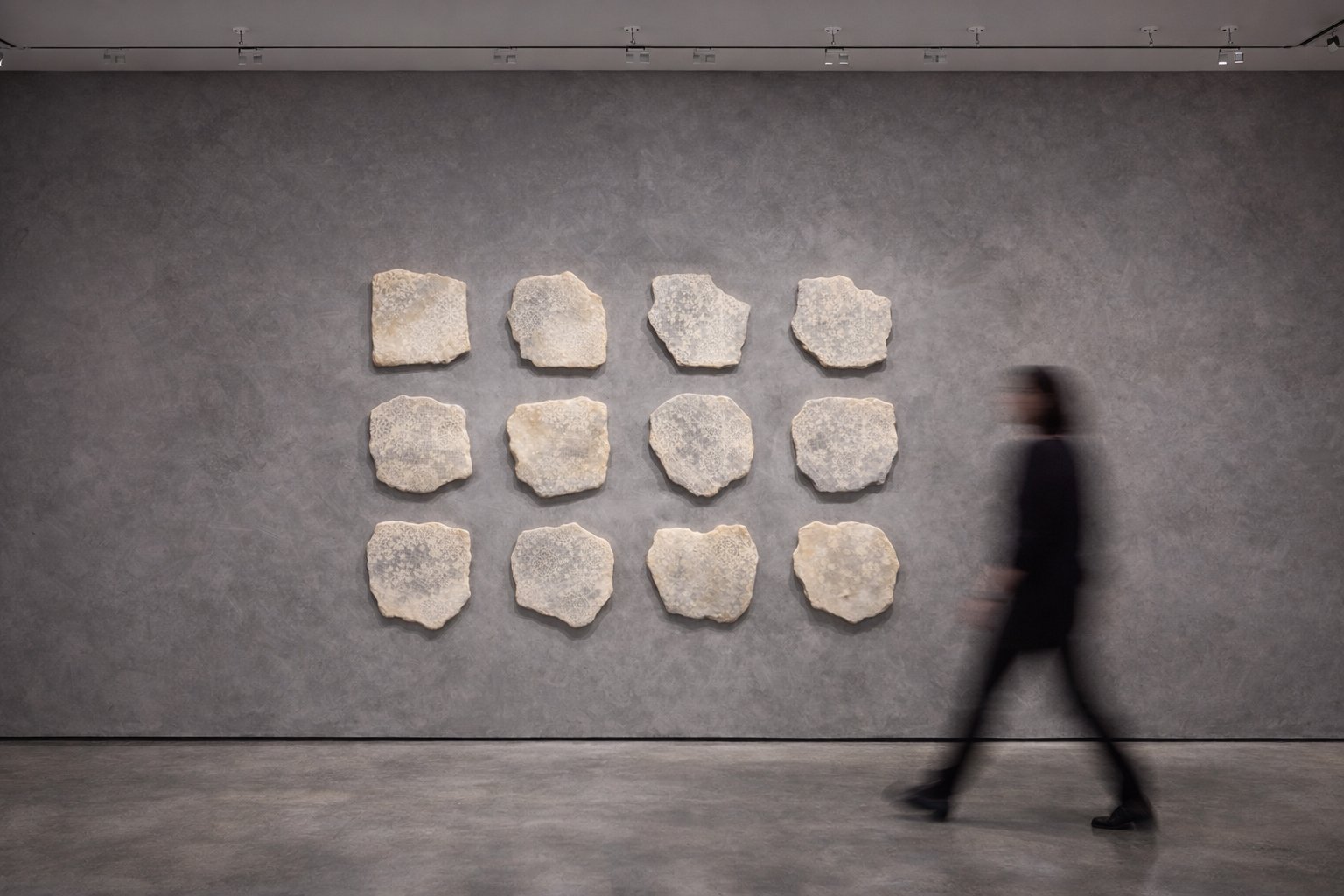 Together they form a dispersed field across the wall—mourning as accumulation rather than event.