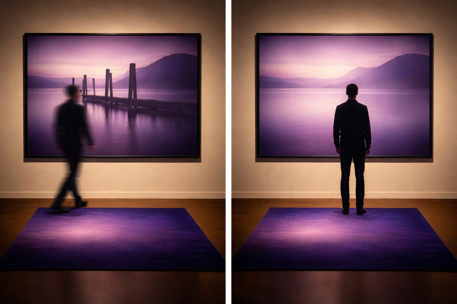 The work explores the architecture of deliberation — the quiet space between impulse and action — where presence itself becomes the central act.