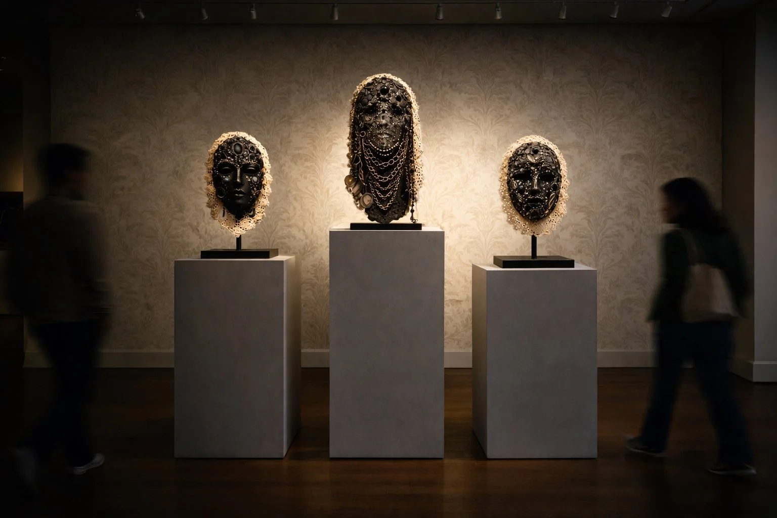 They are not disguises, but structures—objects that hold what could not be spoken, worn or set down.